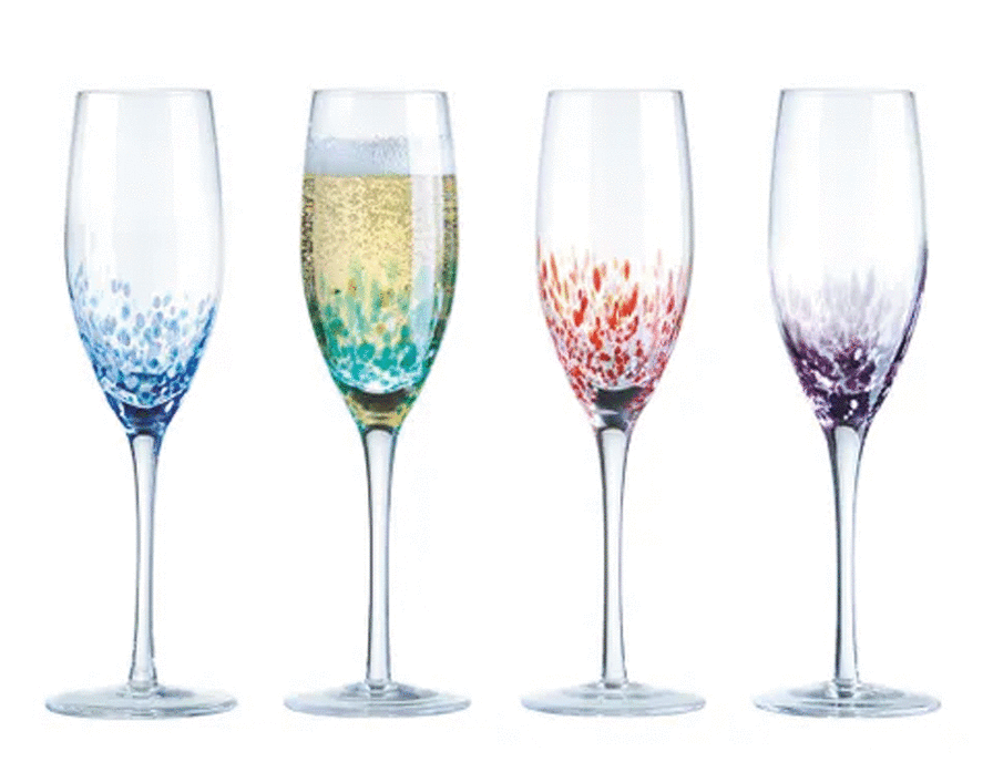 Speckle ‘s unique look is created by combining melted colour and white glass beads into the bowl. This mixture of bright and vibrant coloured glass beads, broken up with crisp, white beads creates a beautiful swirl of colours in every piece. With each set containing four different coloured glasses, Speckle is a smart and trendy collection. Each of the four sets are gift boxed and the range comprises champagne flutes, wine glasses, gin glasses and double old fashioned tumblers. Set of 4 different coloured glasses Hand wash recommended Gift Boxed Dimensions: 55 × 55 × 240 mm Capacity: 25 cl Colour: Multi-coloured