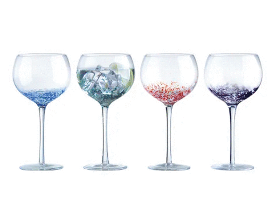 Speckle ‘s unique look is created by combining melted colour and white glass beads into the bowl. This mixture of bright and vibrant coloured glass beads, broken up with crisp, white beads creates a beautiful swirl of colours in every piece. With each set containing four different coloured glasses, Speckle is a smart and trendy collection. Each of the four sets are gift boxed and the range comprises champagne flutes, wine glasses, gin glasses and double old fashioned tumblers. Set of 4 different coloured glasses Hand wash recommended Gift Boxed Dimensions: 110 × 110 × 210 mm Capacity: 50 cl Colour: Multi-coloured Substrate: Glass