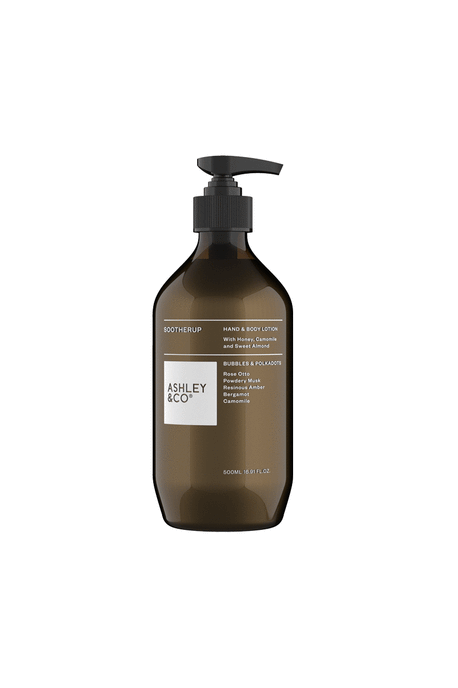 Get smooth and Sootherup. Nourishing botanicals of honey, camomile and sweet almond create a plush, creamy hand & body lotion to banish all scales. Here for you everyday, LOVE-MATCH with our Washup for a superlative cleanse & soothe ritual. 500ml