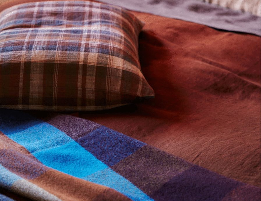 Cabin Wool Blanket Colour: Mulberry/ Multi Size: 150x180cm The Cabin Wool blanket is a study of colour and its infinite combinations. Harmonious unions exist next to contrasting combinations and results in a united, playful design. The design takes inspiration from the New Zealand tradition of tramping and textiles found in quintessential cabins and huts. The blanket is a cheerful reimagining of these classic New Zealand heirlooms - one we hope becomes a beloved textile in your home. Designed in our Auckland studio by our in-house designers Imogen Tunnicliffe and Sophie Clapson. Woven and milled by a local manufacturer using lambswool sourced from the East Cape of the North Island.