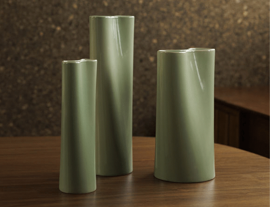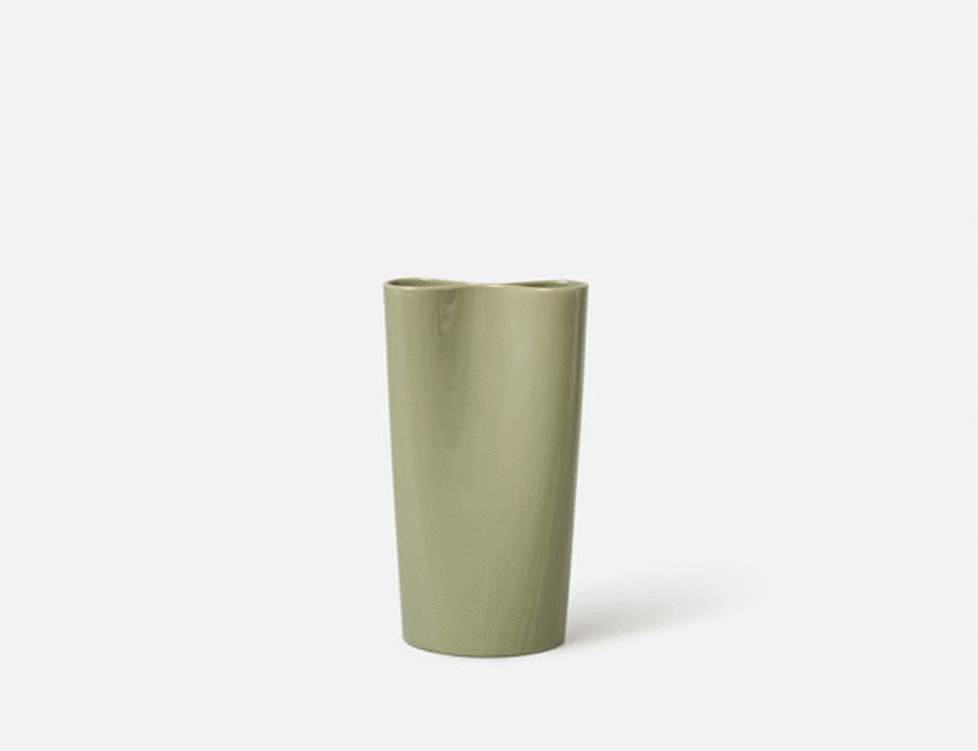 Pinch Vase The Pinch vase is a collaboration between Città and internationally renowned product designer Jamie McLellan. Its design features a cylindrical base that tapers into a ‘pinched’ top, forming a distinctive ‘figure eight’ silhouette with two separate chambers. Thoughtfully balanced proportions ensure the base circumference is equal to the pinched outline. The unique shape allows floral arrangements to fan out in a striking widescreen effect or form an asymmetrical display when one side is filled. Each vase is meticulously crafted in a family-operated pottery workshop in Vietnam. The ceramic composition creates walls that are strong yet elegant and fluid. Available in a harmonious nature-inspired palette: bright citrus yellow, light pōhutukawa bud green, and deep charcoal green.