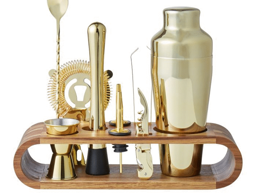 This Davis & Waddell Bar Set with Acacia Stand is both stylish and practical. It includes a shaker, muddler, mixing spoon, strainer, waiter’s corkscrew, ice tongs, jigger, two pourers, and acacia wooden stand. All tools are made from stainless-steel with a sophisticated gold appearance, meaning they look great and will last many years to come. Enrich your home with this beautiful Bar Set with Acacia Stand from Davis & Waddell.