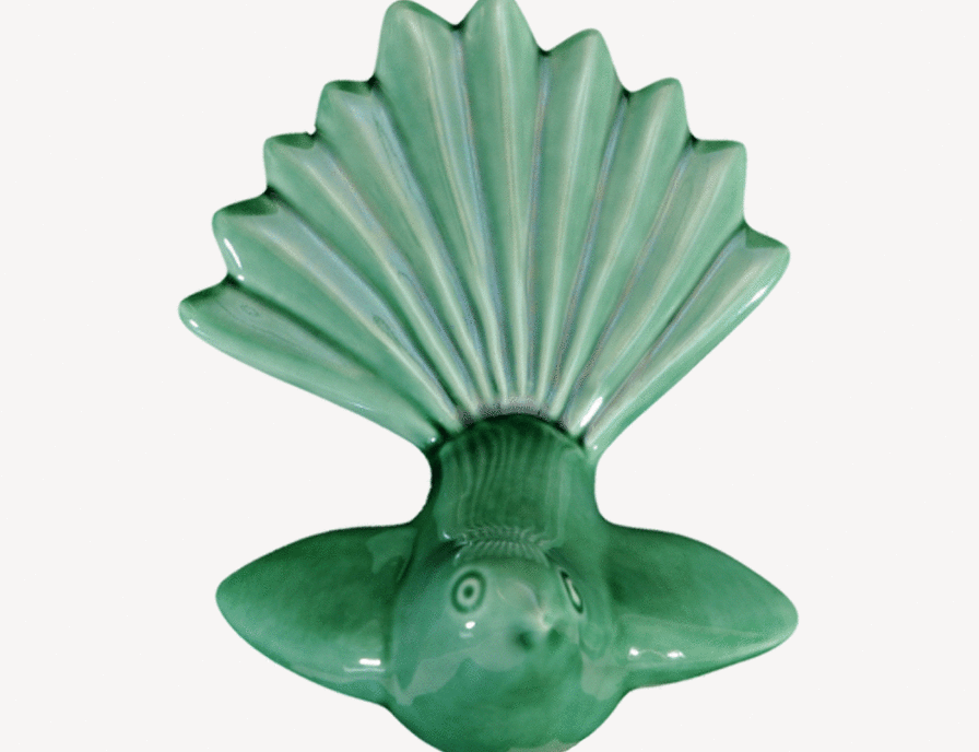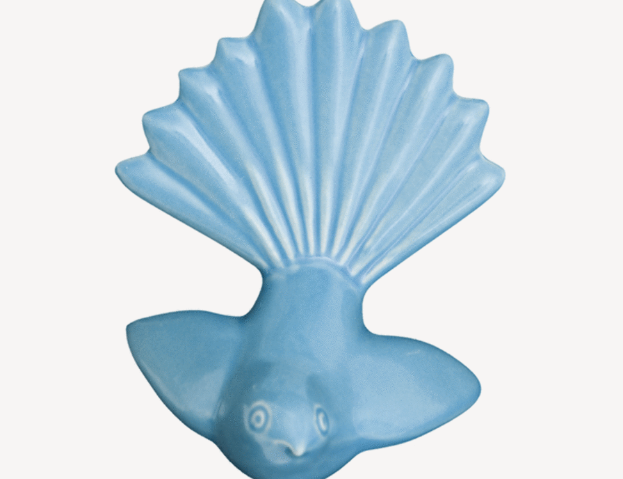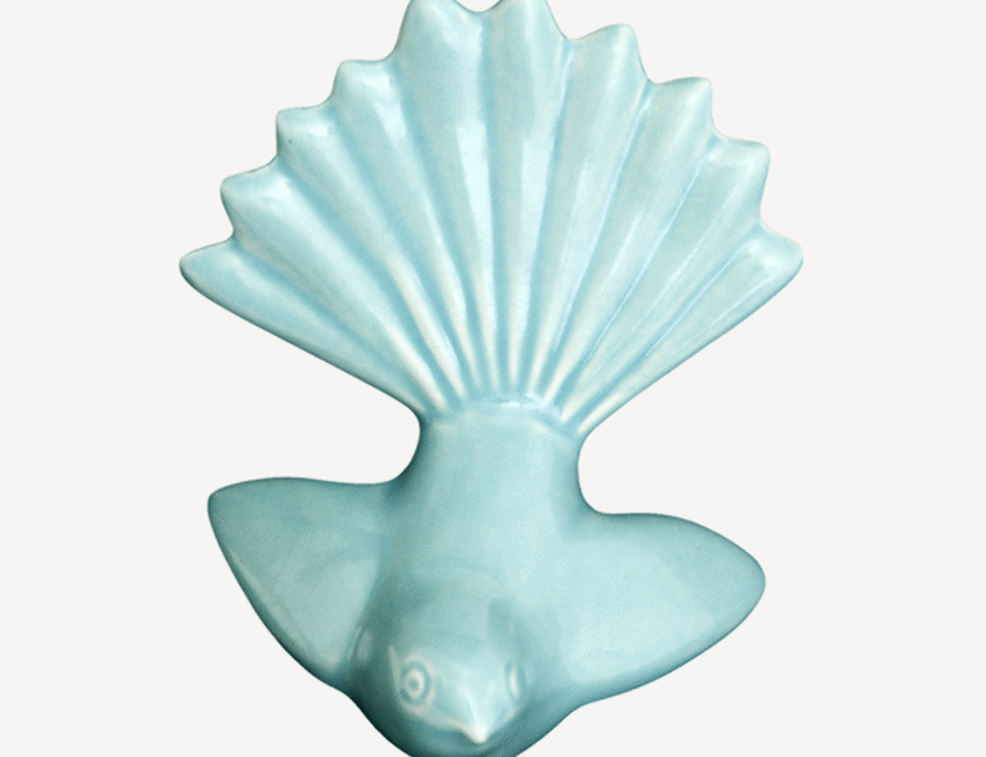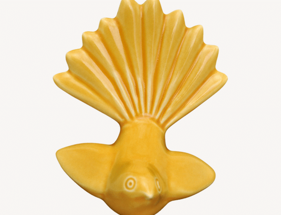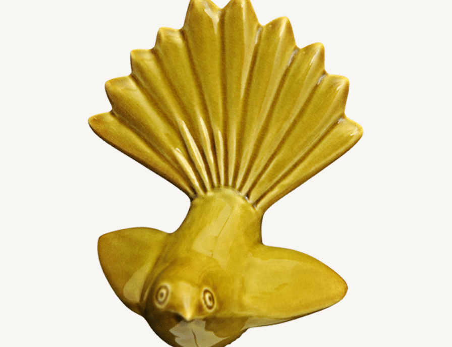 The bird, inspired by the native fantail (Piwakawaka) of New Zealand captures the flitting friendly nature of the cheeky fantail. The bird is freestanding or hangs or may be grouped on a table or wall (cascading).