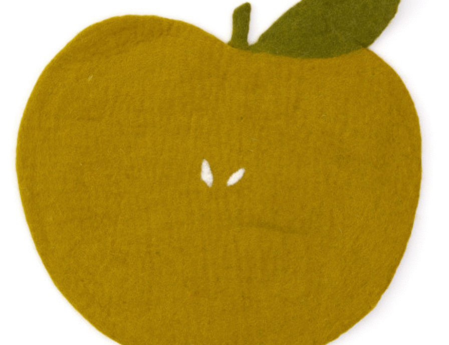 The APPLE PASTILLE will be perfect for brightening the table! As a placemat or coaster in the dining room, placed on a workbench or a sideboard in the kitchen, it will bring a playful touch, high in vitamins, and protect the different surfaces from scratches and stains. Its uses are endless! Made from woollen felt, it’s very easily maintained. The + : You can combine the different VEGGIE PASTILLES for a festive and playful table! Very poetic! Traditionally crafted, free trade product – Apple placemat, made by hand in Nepal. Felted sheep’s wool is a natural and renewable material with thermal properties. Naturally hypoallergenic and easy to maintain, it arrives on the table for daily use. Care instructions Regular care, vacuum or brush. In case of stains, use a warm sponge and soap or a suitable stain remover. Washable by hand or in a machine without spin drying, on the wool setting.