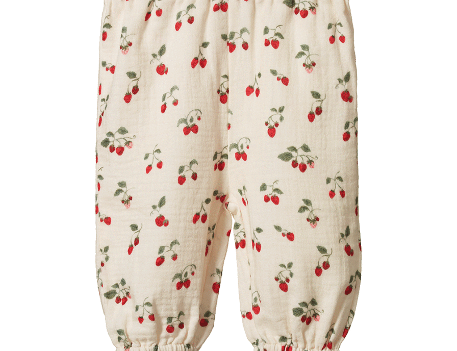 Nature Baby Daphne Pants Muslin - Strawberry Blush Print
