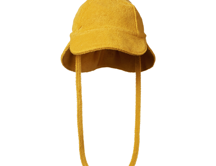 Dash Hat Terry Our Dash Hat is made from soft 100% organic cotton terry, designed to keep little ones cool and covered on sunny days. With a front peak for shade and a back flap for extra neck protection, it's both practical and comfortable. The ties under the chin and elasticated back ensure a snug, adjustable fit for all-day wear. * GOTS certified CU 862149 * 100% organic cotton terry * Front cap peak to provide shade * Back flap to protect the neck * Ties under chin to stay in place * Encased elastic at back for adjustable fit