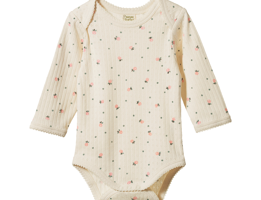 Nature Baby Long Sleeve Bodysuit Pointelle - Posey Blossom Print