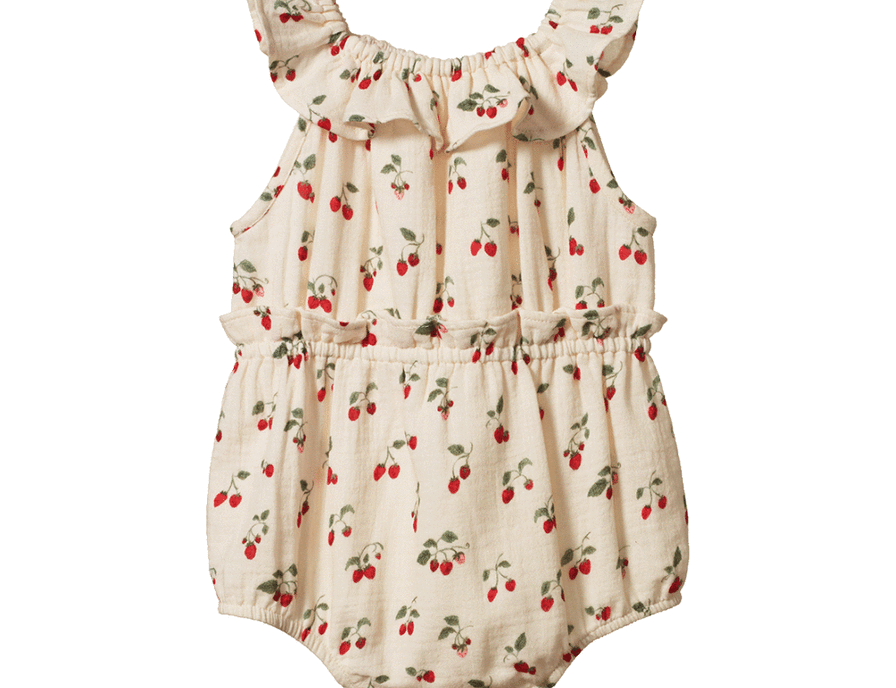 Nature Baby Plum Suit Muslin - Strawberry Blush Print