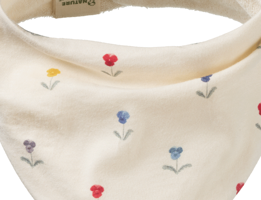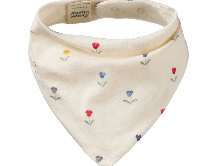 terry triangle bib Designed to be worn all day - not just for meal times. Perfect for dribbly or teething babies, it has ample covering of baby's front with easy snap fasteners at the back neck for easy attachment. Made from certified organic soft stretchable terry cotton towelling. To minimise shrinkage, this fabric has been pre-washed in a GOTS certified factory. *GOTS certified *100% certified organic cotton terry towelling *easy snap domes