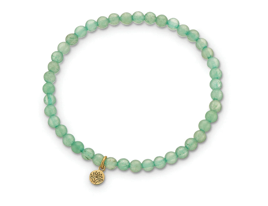This natural gemstone bracelet is part of our Healing Gem Bracelets collection and can be given on the card as a gift of love. They can be worn on their own or stacked together depending on what gemstones resonate with you. 19cm (4mm round bead) Aventurine and brass Healing: balance Aventurine can magnify the energies of prosperity and abundance, calm and balance. Aventurine can help you to make decisions and boost self-confidence. If a life change is causing stress, aventurine is believed to create emotional calm and a sense of overall well-being/ Our quality gemstones are natural (undyed) and slight colour variances to what is pictured may occur which makes each piece even more unique.