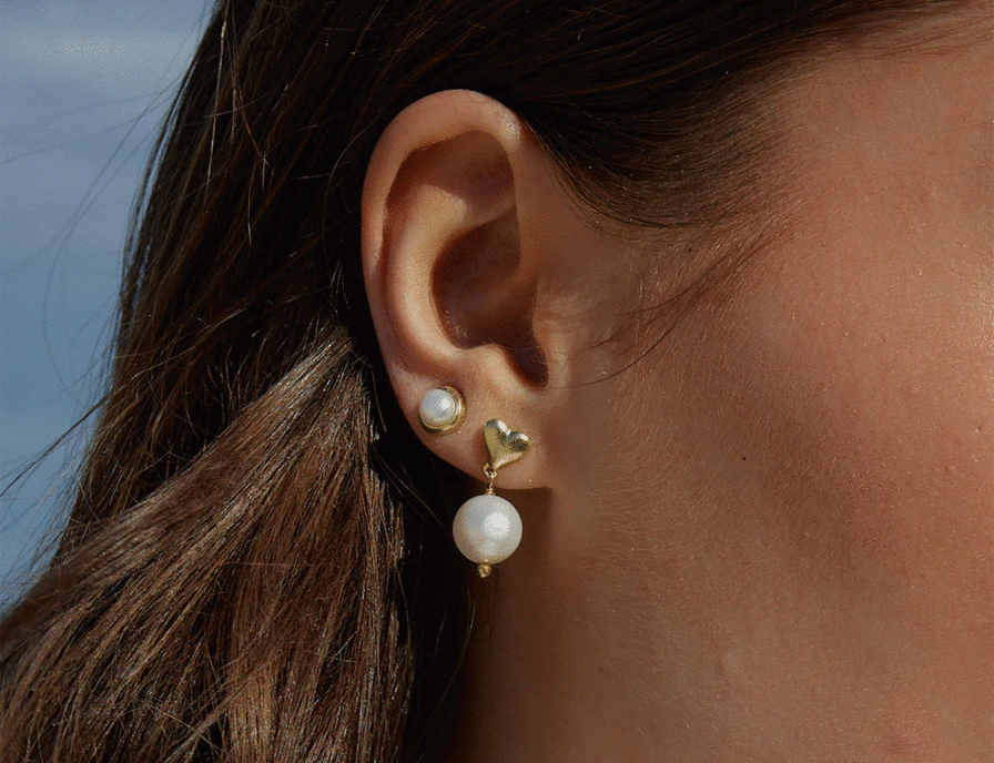 Set of handcrafted bezel set pearl stud earrings. Part of our Oceana collection, a collection inspired by our love of the ocean and the treasures that lie within. handcrafted from solid brass natural freshwater pearls sterling silver posts & backs includes Palas jewellery pouch.