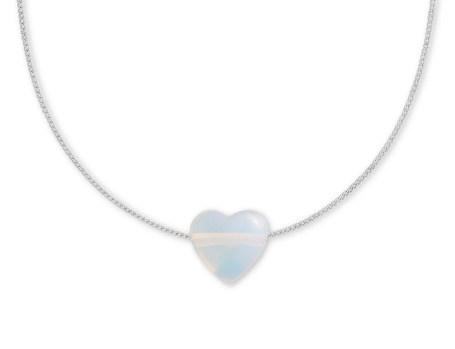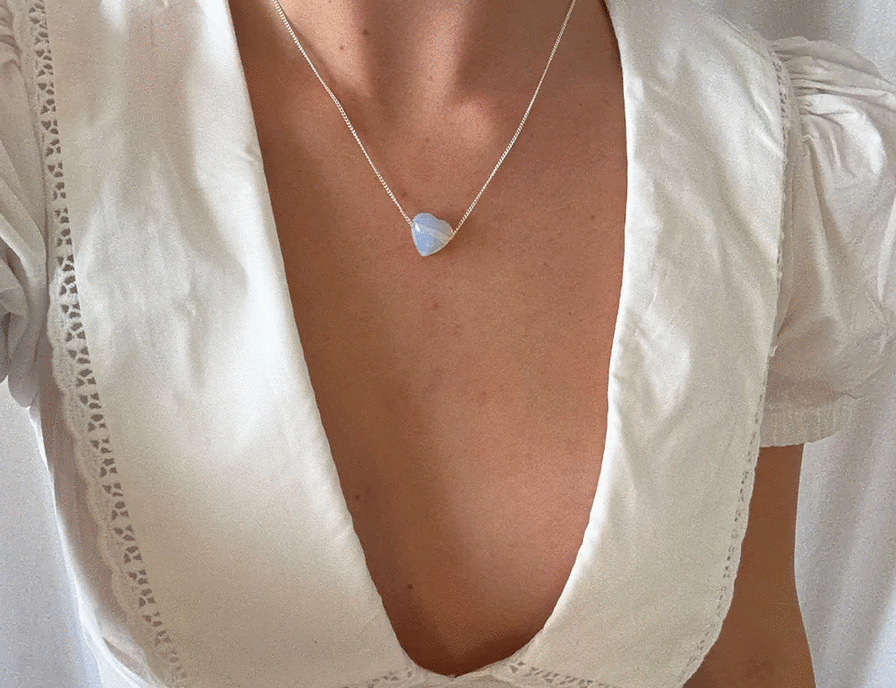 Our Heartstone Collection is a soulful curation of nine heart shaped gemstones each suspended from a fine sterling silver adjustable chain and infused with meaning. These hand crafted pieces celebrate intention, energy and emotion to wear close to your heart. Each Heartstone carries its own unique power. Opal glass heart (approx 15x15mm) sterling silver adjustable chain (40cm + 3cm extension) Meaning: ‘Clarity’ - Opal glass carries a gentle, luminous energy that symbolises purity, emotional healing and spiritual awakening. Inspired by the natural opal it is believed to enhance intuition, encourage inner peace and support quiet transformation. Opal Glass can reflect a connection to the higher self and may help to clear emotional blocks and bring clarity during times of change.