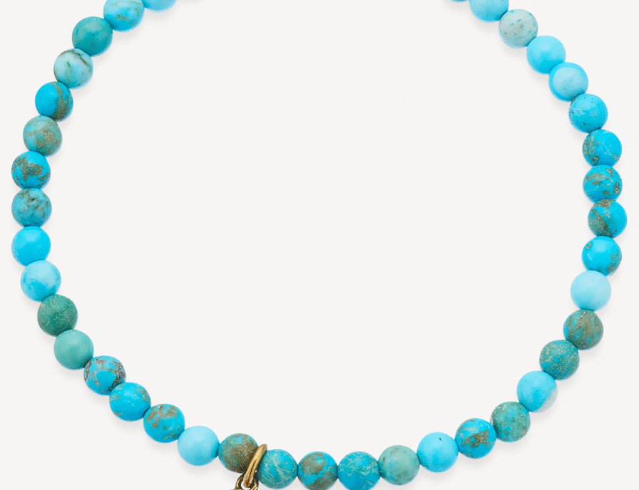 This natural gemstone bracelet is part of our new Healing Gem Bracelets collection and can be given on the card as a gift of love. They can be worn on their own or stacked together depending on what gemstones resonate with you. 19cm (4mm round bead) Turquoise Howlite and brass Meaning: calmness Turquoise Howlite is believed to aid thethroat chakra, communication and self-expression. It may calm an over-active mind and can also be used to support insomnia and enhance meditation. Our quality gemstones are natural (undyed) and slight colour variances to what is pictured may occur which makes each piece even more unique.