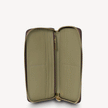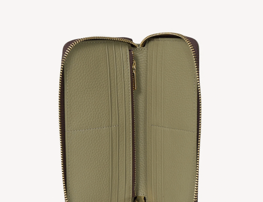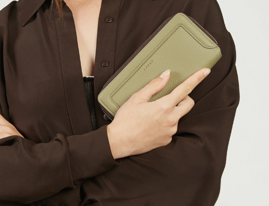 LYRIC WALLET New to the Saben wallet family this season is Lyric, a full-sized version of Landry. We think this new rockstar wallet has all the makings of your next wardrobe MVP. With 10 sleek card slots, two note pockets, and a built-in zip pocket to keep your coins, bobby pins and that rogue earring locked and lovely. Lyric’s zip mouth allows for easy access, allowing her to be opened flat like a book and makes finding cards a breeze. Front leather frame detailing is the crown on top of this future classic. Lyric is built to last in leather which will soften with every wear. Available in Black and limited-edition colours Clay and Orchid this season.
