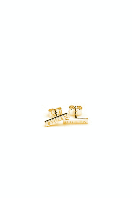 Tiny Stolen Bar earrings plated in yellow gold Sold as a pair Comes with Stolen Girlfriends Club earring box Unisex style