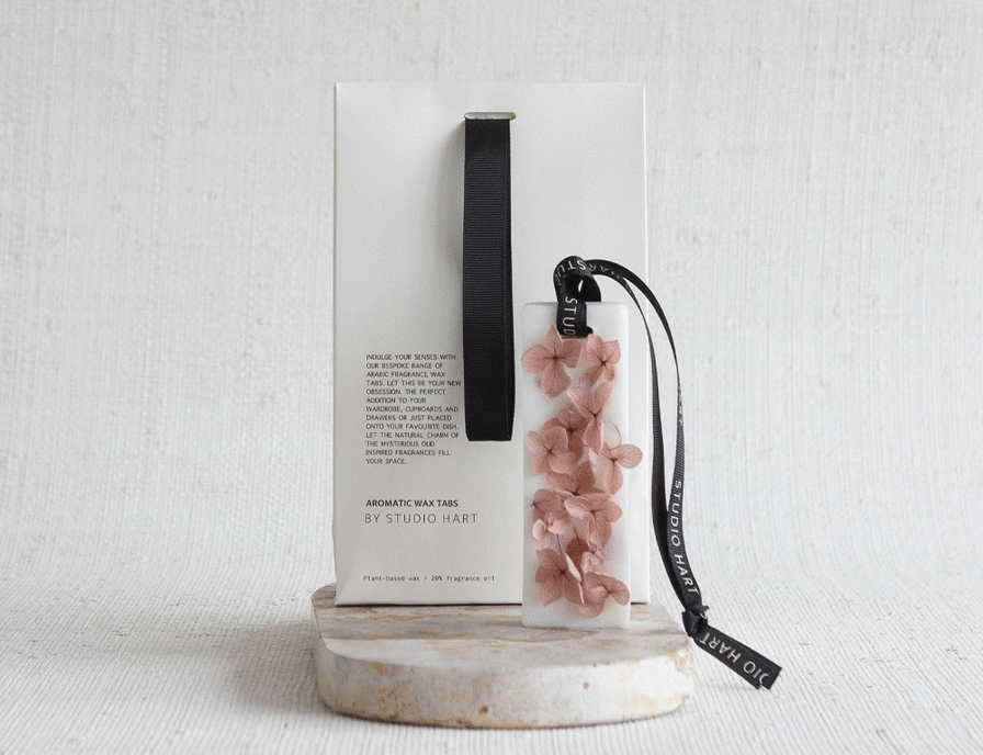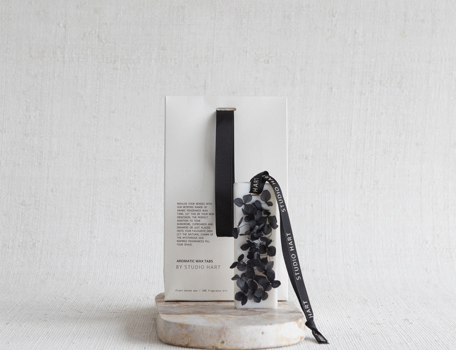 SCENTED WAX TABS Inspired by the ancient allure of oud, each wax tab invites you on a sensory journey—rooted in memory, layered with emotion. Blending deep, resinous woods, delicate florals, and golden spices, our fragrances reflect the richness of Arabian perfumery, grounded in the beauty of nature. Adorned with botanicals and designed for slow diffusion, these scented tabs bring warmth and atmosphere to the quiet corners of your home — where fragrance lingers like a whispered memory.